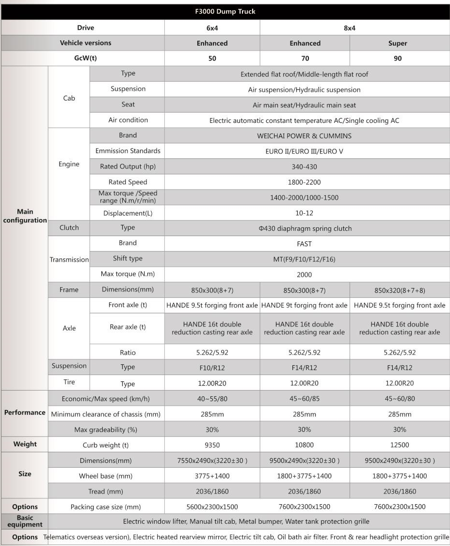 शासकम्यान f3000 6x4 8x4 डम्प ट्रकको उच्च क्षमता छ: उन्नत अक्षसँग स्पिड अक्षरको नयाँ प्रकारको स्ट्रिडल प्लट सर्भल सवारीले सवारीयुक्त क्षमताको साथ निलम्बन निलम्बन गर्दछ।