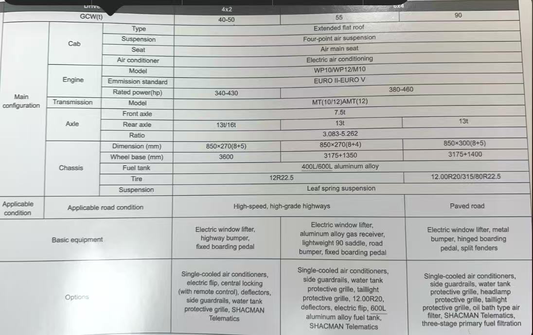 - Transmission: Equipped with 8JS118+QH50 or 10JSD180+QH50 transmission, with high transmission efficiency and smooth gear shift.
